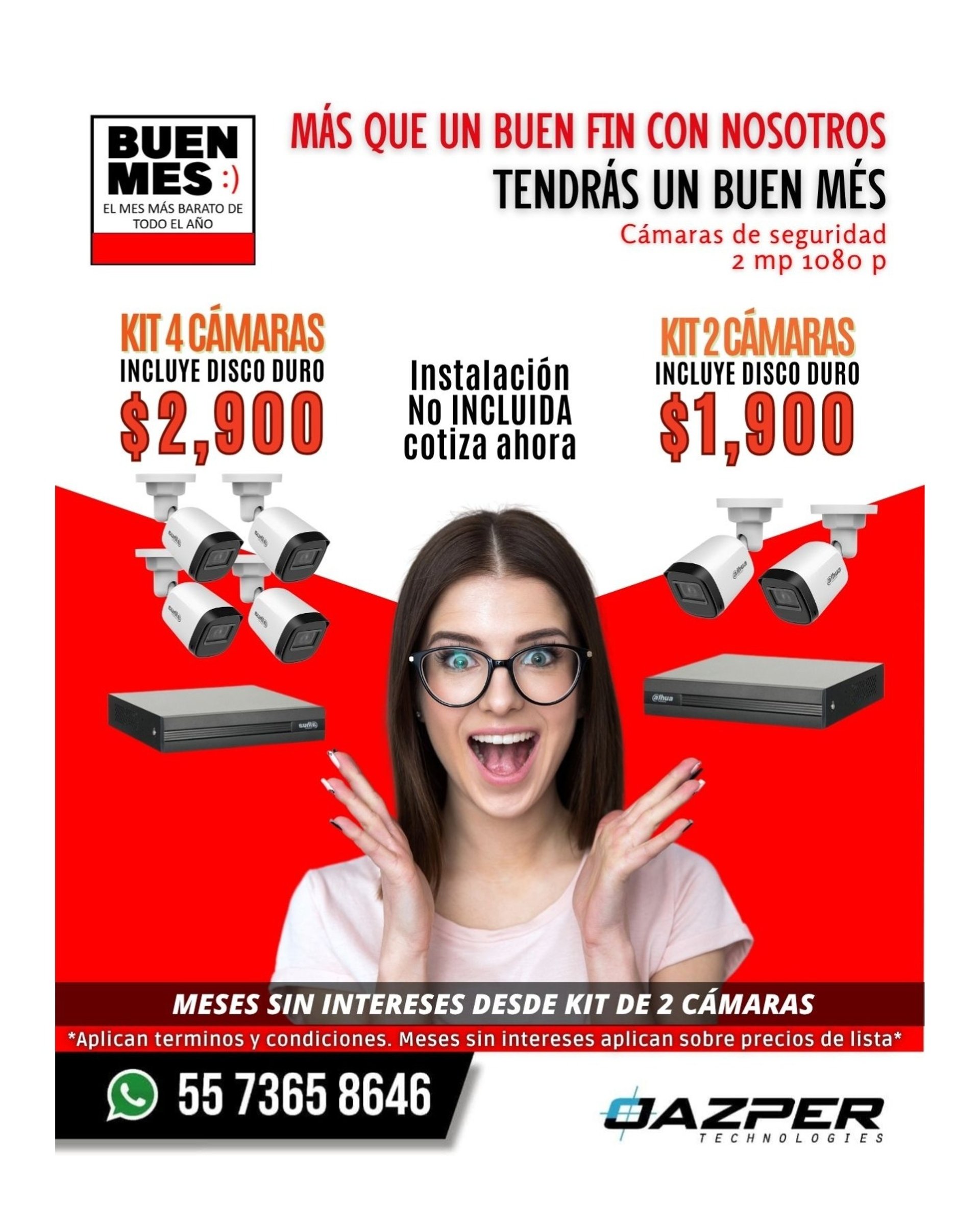 Kits de cámaras de seguridad de 2 a 8 mp, con DVR y disco duro