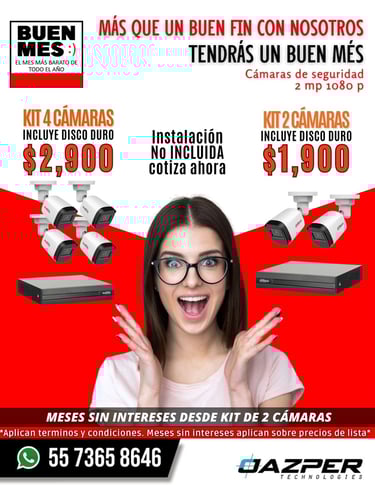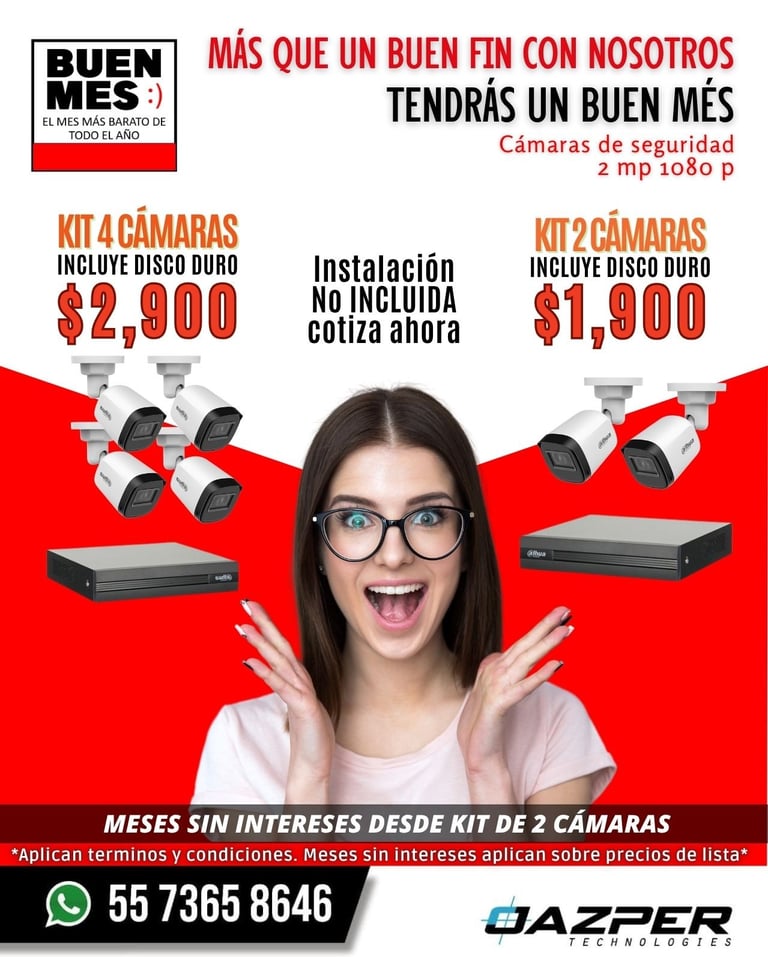 *Los precios de la promoción no incluyen instalación escríbenos para cotizar*. *El precio de la instalación depende de la ubicación y numero de cámaras*.